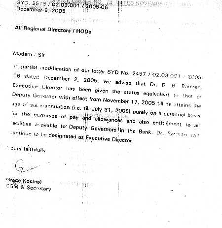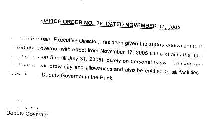 The office order that promoted Barman as dy governor; below Koshy’s letter retracting his promotion