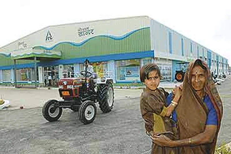 Along with soaps, detergents and toothpaste, the mall sells almost everything—TVs, DVD players, pressure cookers, room heaters, watches, sewing machines and grinders. And, of course, cigarettes. Farmers can also buy motorbikes, or even tractors. ITC has launched its own rural range of clothing and shoes too—trousers at Rs 166 a pair tailored for the village folk.