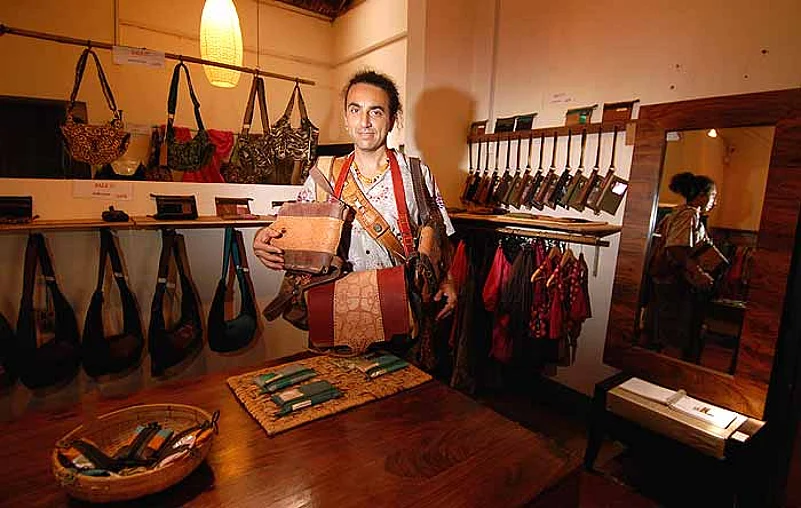It’s a sweltering mid-April morning in Anjuna, the sprawling village at the centre of the international Goan scene. Many of the ‘Israeli crowd’ (and other nationalities as well) are sitting at Artjuna, Moshe Inbar’s art gallery-showroom-café, the place to start the day. Later, quite a few will be off to a full day of work and production: Tzuri to his acclaimed cliff-top restaurant, Ori to the recording studio, Nachum to the workshop where he makes his exquisite, exclusive jewellery. But for now, with the breakfast crowd lingering over espresso and morning gossip, and a rainbow coalition of children toddling underfoot, this seems like a moment frozen in time. “I wanted to have a place that suited the creative, irrepressible character of the Anjuna community, and to provide a showcase for our international-standard artisans. It also feels good to be able to give back something to Goa, a place which has given me so much,” says Moshe, a master leather worker living here for over a decade. His made-to-order handcrafted handbags, embossed and embedded with engraved precious stones, gold beads and unique closures have become collector’s items, and cost anywhere between Rs 15,000 and Rs 1,00,000 a piece.