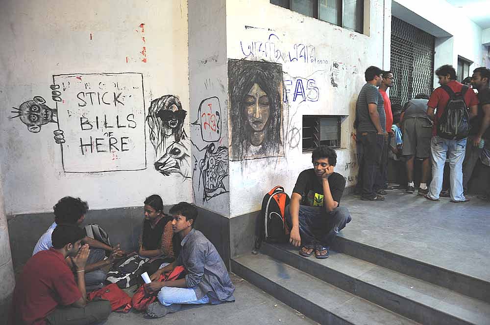 In the 1980s, before economic liberalisation had planted the seed of personal ambition in the Indian mind, the dilapidated arts faculty building of Jadavpur University in south Calcutta used to be fronted by a long stretch of three shallow steps, separated at intervals by pillars holding up the portico roof, and leading down to a small plot of open ground covered with untended grass and students smoking—sometimes tobacco, often pot. It would be hard to find a higher density of a dogged lack of purpose anywhere in India. In some magical fashion, the act of walking in through gate no. 4—either before or after a quick snack at a shanty across the road—seemed to rob the brain and body of any desire whatsoever for activity.