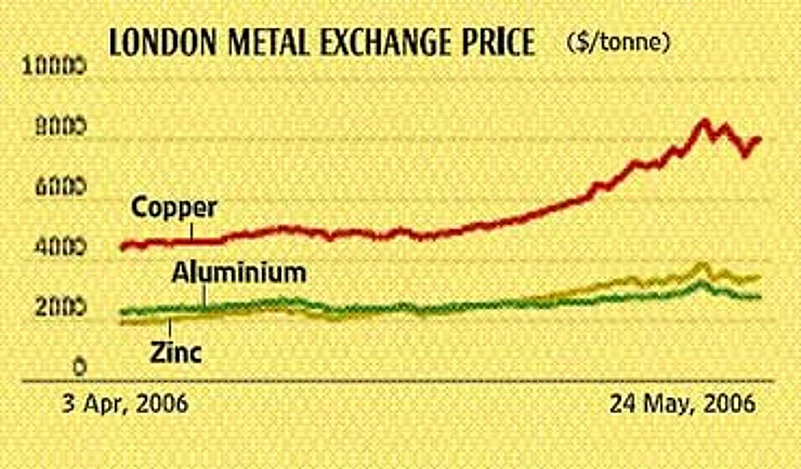 They were further convinced something was amiss after the crash in metals prices on the London Metals Exchange (LME) the same day (May 15). It prompted investors to wonder whether the run-up in the global commodities market had indeed been a bubble. Indian metals stocks, including TISCO, Hindalco, SAIL and others, also crashed, further pulling down the Sensex. By the end of that week, the Sensex shed 11 per cent, but the BSE metals index lost a much higher 22 per cent. It signalled the beginning of the panic. On Thursday (May 18) and Friday, the Sensex was down nearly 1300 points.