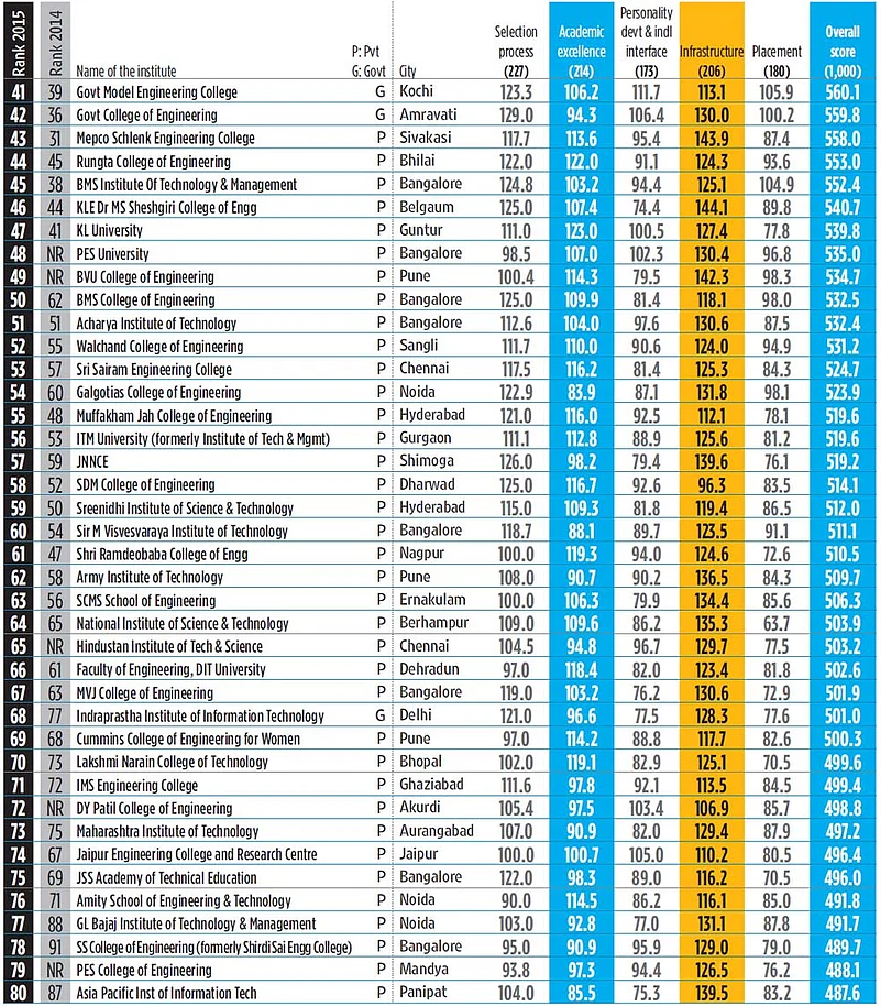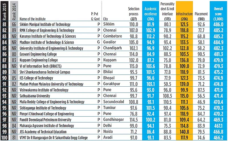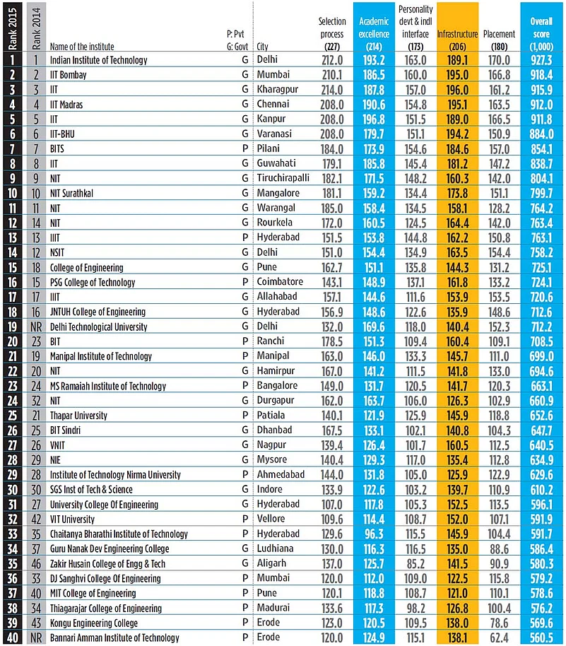 - Only colleges offering BE/BTech courses (approved/affiliated) and a minimum of three passed-out batches by 2015 have been ranked