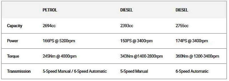 The features mentioned above are surely steep for the premium they command, but will make your life easier in the long run. That said, there’s no AT option or even the 2.8-litre diesel engine, so you will have to extend your budget by quite a margin if you want a relatively more feature-loaded variant compared to the GX for these powertrains.