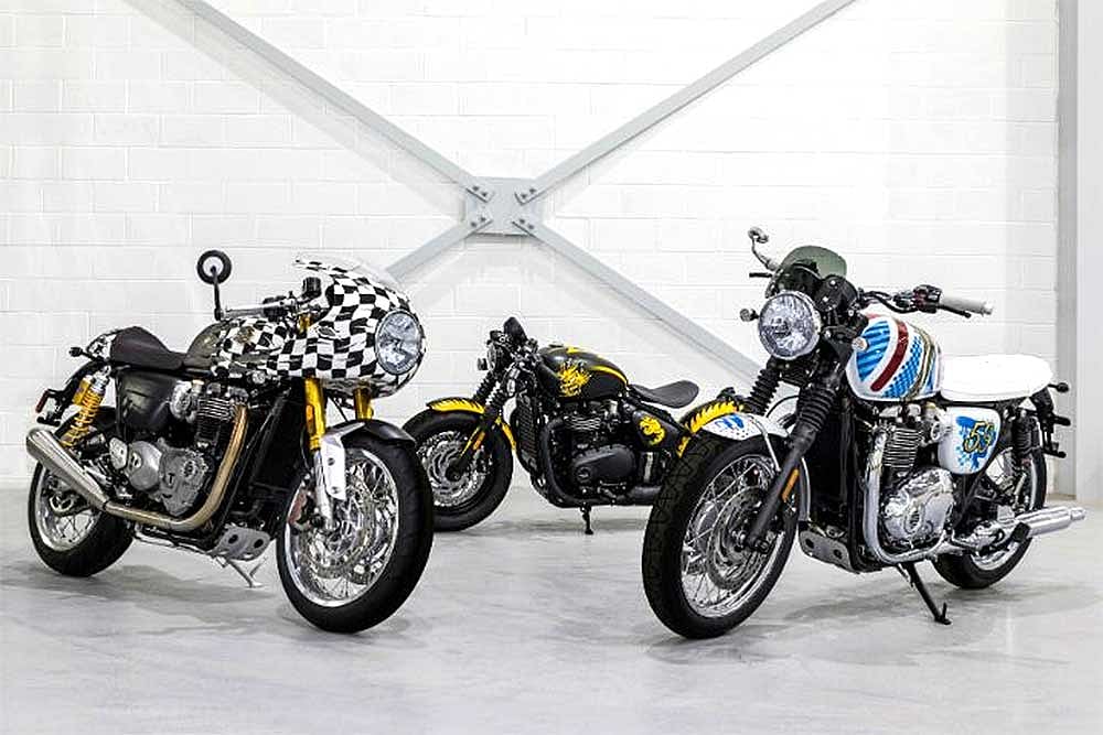 The three motorcycles that are part of this collaboration are the Bonneville Thruxton R, a black Bonneville Bobber and a Bonneville T120. All the bikes have received a distinctive hand-painted design, making them an instant collector's item.