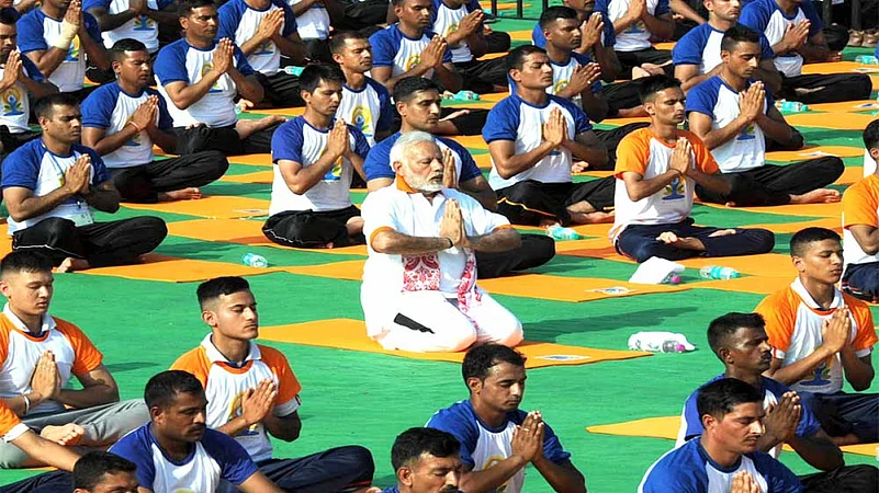 Yoga enthusiasts across the world took part in mass yoga events to mark International Yoga Day.