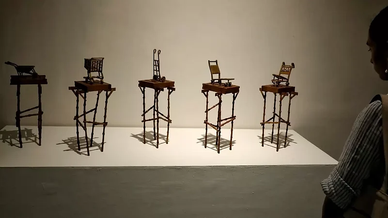 Achari is part of a section of artists who have been looking at objects as a way to connect past and present, especially at a time when political polarisation has started to morph memory. His curation is reminiscent of Sudarshan Shetty’s 2019 solo showcase ‘Pieces Earth Left Behind' which unveiled 99 objects of everyday life. In fact, Shetty’s installation depicting a wooden video camera was also part of Achari’s curation.