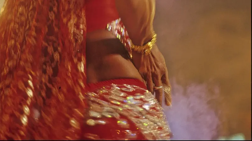 She moved through the kitchen noiselessly to the door of the room. Now she could see that all the low-hung Chinese lanterns were dimmed to cast just a suspicion of light inside the room. And in the middle of the room was a slim woman, with her back to Lieserl, dressed in a ghagra choli, the ghagra tied well below her waist so that it cut with delicious callousness into the soft bulge of her hips.