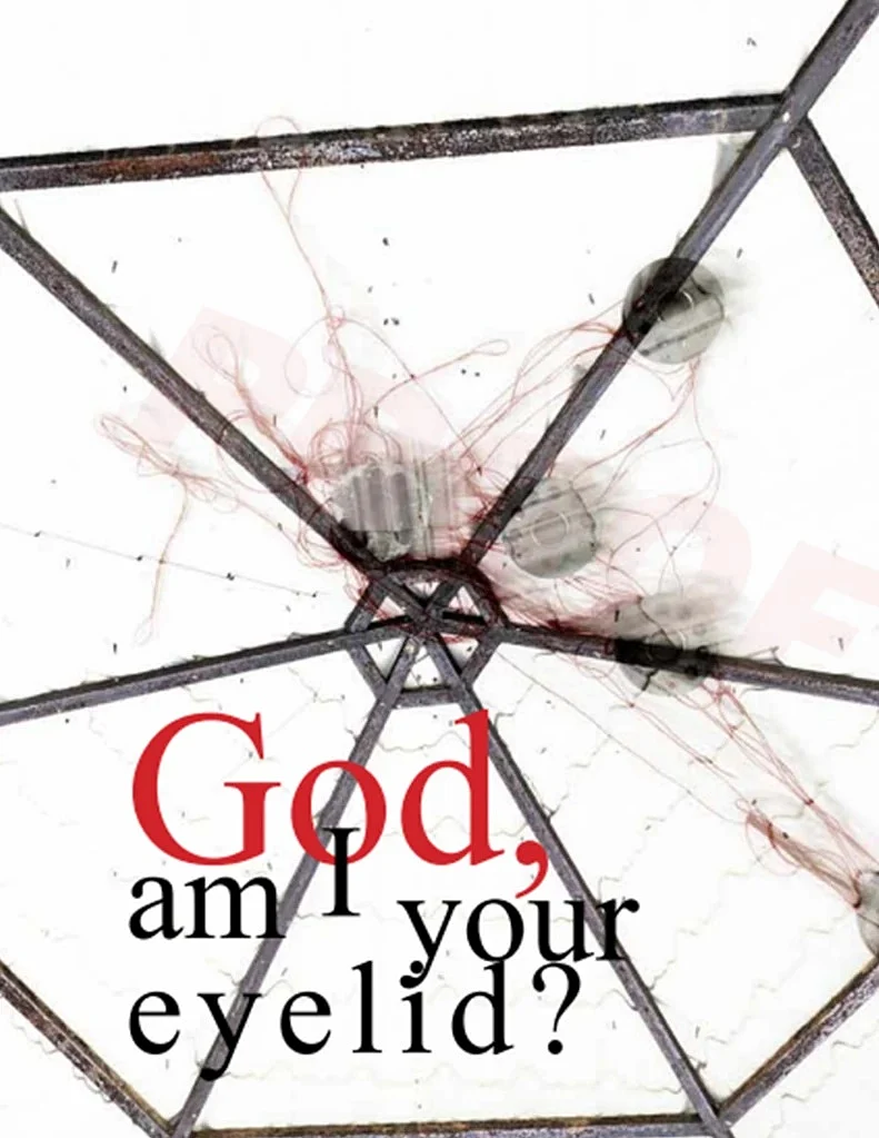 Aakriti Kuntal’s debut book God am I your eyelid? is a visual incantation weaving together matter and metaphor in its exploration of corporeal fragility. This graphic chapter book is a unique archive of tentative choreographies shaping the contours of convalescence within an unsettled ambience of clinical spaces. The consummate aesthetics of this glossy volume are shockingly counter to the anthropocentric cri de coeur that escapes from its hermetic restraints. Aakriti journeys into the pulsing heart of a ruptured ecology, a sensibility wounded by the mutating topography of severe illness. The pictorial poeisis unfolding here is somatic attunement sublimating in unspooled sensations of darkly radiant wisps in deep crimson and night black. Fluid tangles of string gleam in the images of the first section provocatively entitled Cartesian Flutter. Each visual offers a discursive frame using a vernacular of intimate tactility.