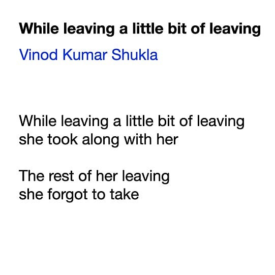 All poems featured in this essay can be found in Rajkamal Prakashan’s Pratinidhi Kavitaein of Vinod Kumar Shukla.