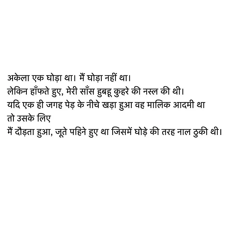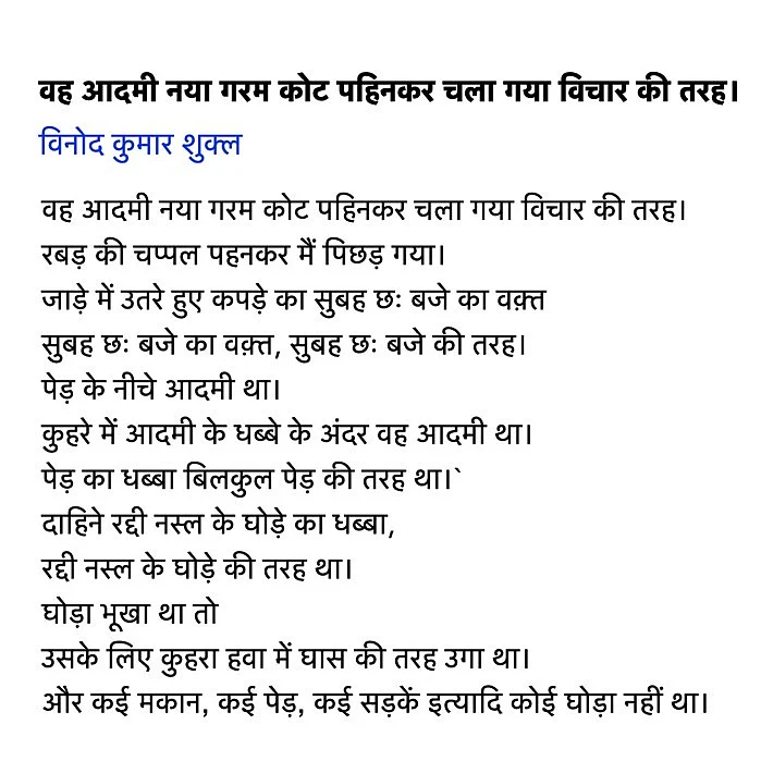 This is not prophecy, but a methodology of attention that emplaces you within the everyday, as a fervent presence that echoes, even in the vacuum of existential dread. Shukla taught this saadgi through the magic of repetition, description, and concerted attention. His philosophy of simplicity was unfurled by a language that defied prevalent notions of syntax and narrative – some critics argued that perhaps popular hindi literature needed to be shaken out of its love for high melodrama, and flourish, the way Shukla’s stories did. But then again, his first collection of poetry’s legendary title isarguably a masterclass in “flourish”. Earlier this year, I referred to that line in a newsletter commentary…
