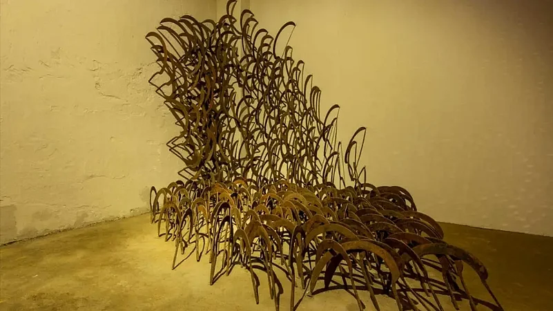 As I talk with Shambhavi Singh about her art forged using sickles (Reaper’s Melody of Kaatani Geet, 2018) or the goddess (Red Kali 2009) or the presence of black and water in her solid artworks my wit whispers to me that I finally met an artist whose art inhales and exhales, is micro and macro at once, and steps inside my mind with its feet unwashed, unashamed of the dirt and dust it brings in. She is a born storyteller and imparts her tale the way the men closer to the earth have been chronicling for thousands of years. If her story follows the oral tradition, although the elements are as recent as her own childhood, her art reflects the power and symbolism of the cave paintings of Altamira and Bhimbetka.