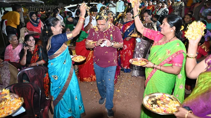 We are at Delilah Lobo’s mansion in Parra. There is plenty of activity in the Lobo house, a booth meeting has been organised and a buffet dinner has been laid out. Her name is constantly being announced on the microphone, as she is speaking to us. We had barely started speaking talking when, Michael — freshly showered from a long day of campaigning — interrupts us. “They have announced your name, you should be on the dais,” he asserts in Konkani. Delilah excuses herself and leaves immediately. Michael Lobo is the Bardez strongman, who was previously with the BJP and now Congress’s biggest hope. Although a veteran of panchayat politics, Delilah is new to the state arena. In a meeting with women voters, she spells out how Parra has been transformed, with smooth roads and development. Siolim has never been won by Congress and Delilah aims to write history. The diminutive sarpanch says that she told Fadnavis months ago that she will contest the Siolim seat. “He had come to my house, and I told him clearly. We were in BJP during Manohar Parrikar’s time. He had certain values and ideals. When he passed away, those values have been eroded. His son has been refused a seat in Panjim. Where his son has no place, where are we?”