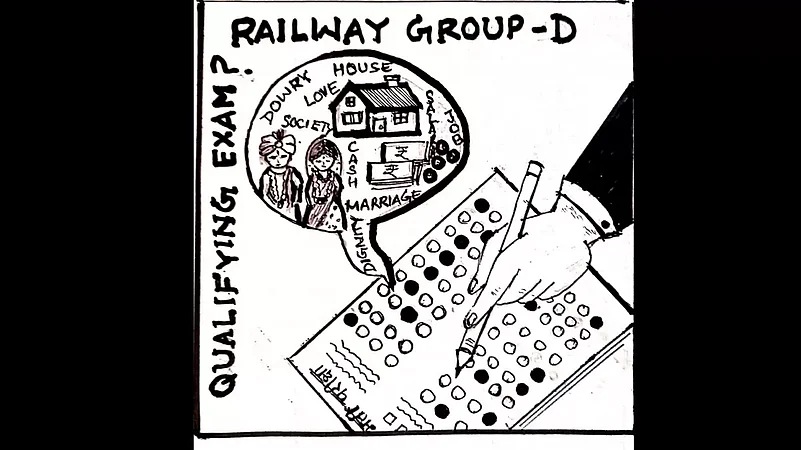 The next morning as Viksa woke up and went for a stroll, he saw a group of youngsters huddled together. He joined them as they all were glued to a news program on a phone. The anchor announced- The recently conducted Railway Group D examination has been declared null and void. The decision was taken because questions were leaked at one of the centers. The authorities are looking into that matter and express their regret for the inconvenience caused.