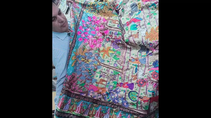 A recent development in zari-zardozi has been in the shawl-line. Sajan, who has been a karkhanadar since 1996, displays a shawl that his karigars have embroidered lately. A paragon of handicraft finesse, the shawl is embroidered with a village scene in countless colours of thread. But, again, the remuneration paid to the karigars is not commensurate with the hard work they put into it. Afsar's response clears all doubts. He is a karigar in Sajan's karkhana.