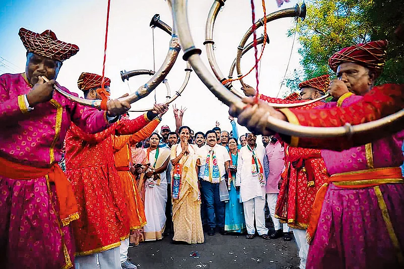 Dressed in a yellow cotton saree, Sule braves the peak noon sun to make a last-minute appeal to the voters, ahead of the May 7 polls. “Ram Krishna Hari, Vazwa Tutari (Blow the Trumpet),” she says, letting voters know about her party’s new symbol; a man blowing turha, a traditional trumpet. She also reminds them that she and her party, NCP (SP), are listed third on the EVM roster.