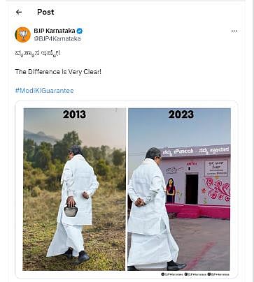 The BJP in its prompt reaction Taking to X, posted an edited picture of Siddaramaiah holding an 'empty pot' in 2013, and without one in 2023.