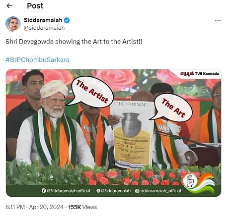 Posting a doctored image of PM Modi sitting with Deve Gowda, Karnataka CM Siddaramaiah said on X, "Shri Devegowda showing the Art to the Artist."
