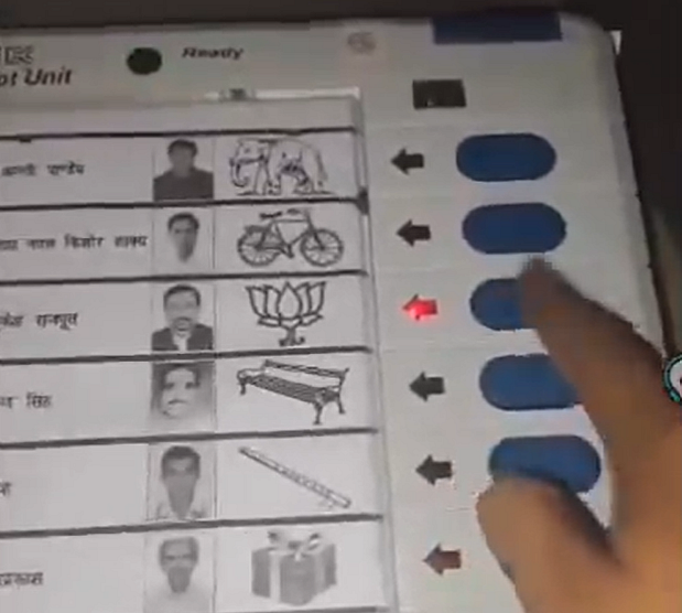 In the two-minute-long video doing the rounds on social media, the voter can be seen voting on the Electronic Voting Machine (EVM) at least eight times for BJP candidate, Mukesh Rajput, who as per the party's list is the Lok Sabha election candidate from the Farrukhabad seat.