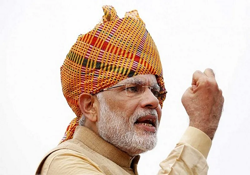 For his maiden Independence Day address as the Prime Minister, Modi opted for a Jodhpuri bandhej turban in bright red colour with green at the trail.