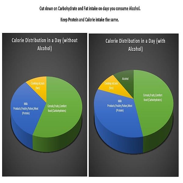 Weekends are synonymous with alcohol. Alcohol derails your efforts to stay in shape. Calories in alcohol are preferentially metabolised by the body. Hence it slows down fat metabolism. Not to mention, alcohol impairs judgement. Your eating behaviour becomes problematic while drinking. Eat high-protein starters and pan-grilled vegetables before and with drinks. Salted peanuts and high-carbohydrate foods are a no-no. Avoid high-sugar cocktail mixers.