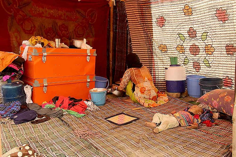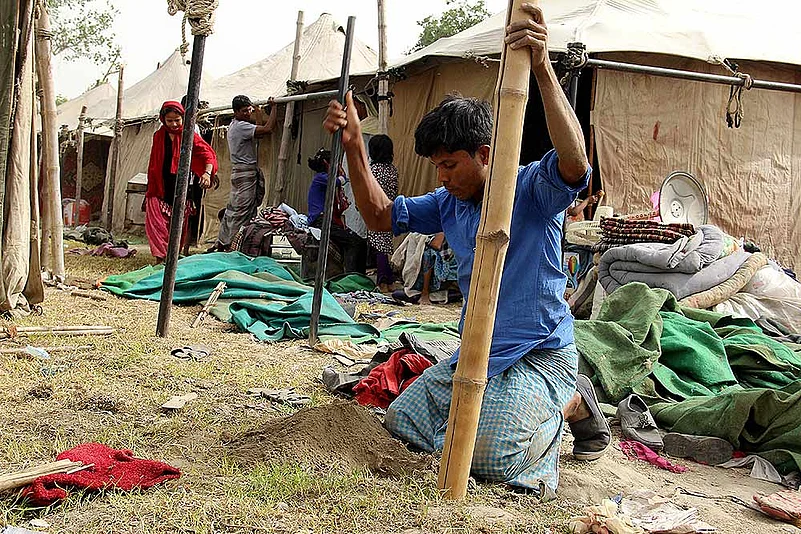 Not enough tents in the camp, so the first priority for them is to make a temporary shelter for their family.