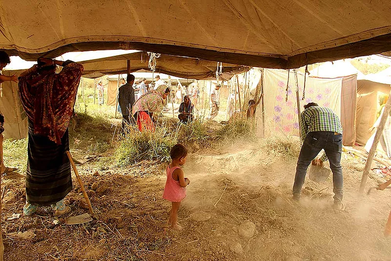 Abdullah 65, the oldest one in the camp, tries to be the helping hand for his family at this time of distress.