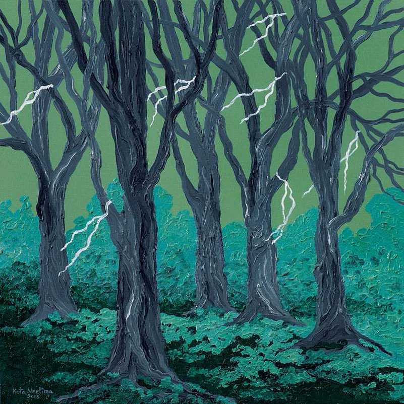 The questions arose because Neelima had by then began thinking if shrines were restricting one’s natural quest to be spiritual; whether a temple or mosque was tending to block the essential trip to explore the inner self. The thoughts lingered for months after the trained artist got back to the national capital—so much so, a year later, she sought to paint the visual of half-a-dozen trees in a forested land. It’s title: Prayers.