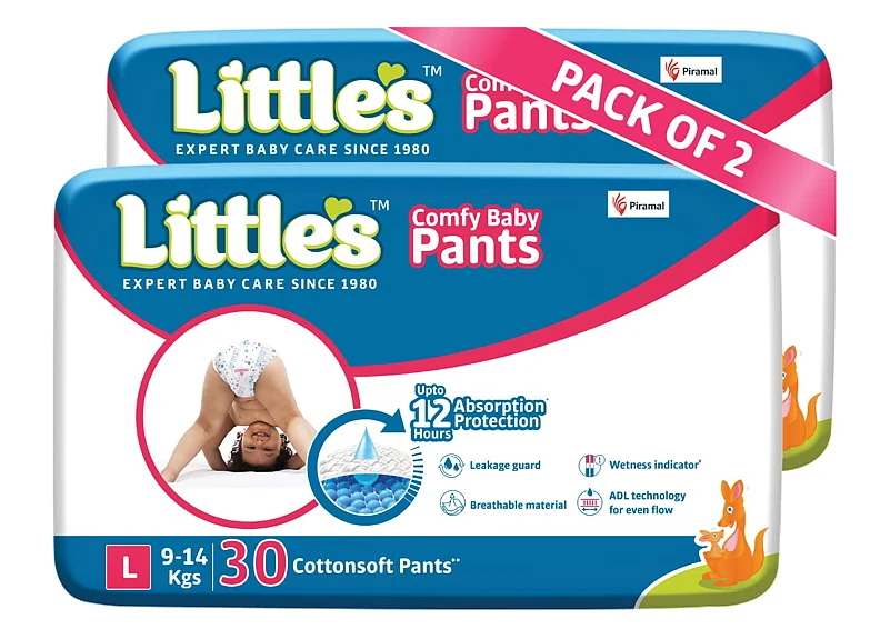 Little's Baby Pants Diapers in the Large (L) size offers a package of 60 diapers made for babies weighing 9-14 kg. These diapers prioritise both comfort and convenience. With up to 12 hours of absorption, your baby enjoys uninterrupted sleep while the wetness indicator shifts from yellow to blue, indicating the right time for a change.