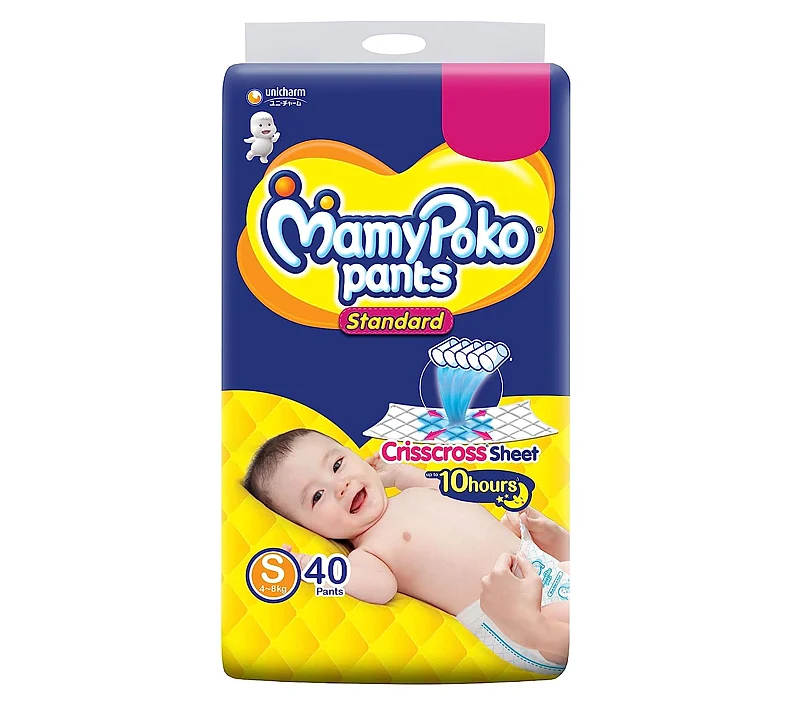 The 40-pack of MamyPoko Pants Standard Baby Diapers in Small size (S) are intended for infants weighing 4 to 8 kg. These diapers are crafted with 6 Glass Absorption and a Leg side wall to prevent leaks, ensuring your baby stays dry and comfortable. The Breathable Waist Band enhances freshness and reduces the feeling of stuffiness. With up to 12 hours of lasting protection, these diapers prevent thigh gaps and redness. They are not only efficient but also easy to wear and remove, thanks to their convenient pant-style design. MamyPoko prioritises your baby's well-being for a worry-free parenting experience.