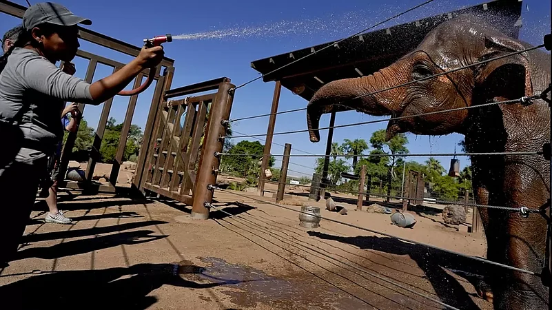As triple-digit temperatures become the norm, the zoo utilizes cooling techniques for the animals that include spraying, frozen treats, shaded areas, cooled pools of water, and earlier morning hours for guests in an effort to keep animals cool.
