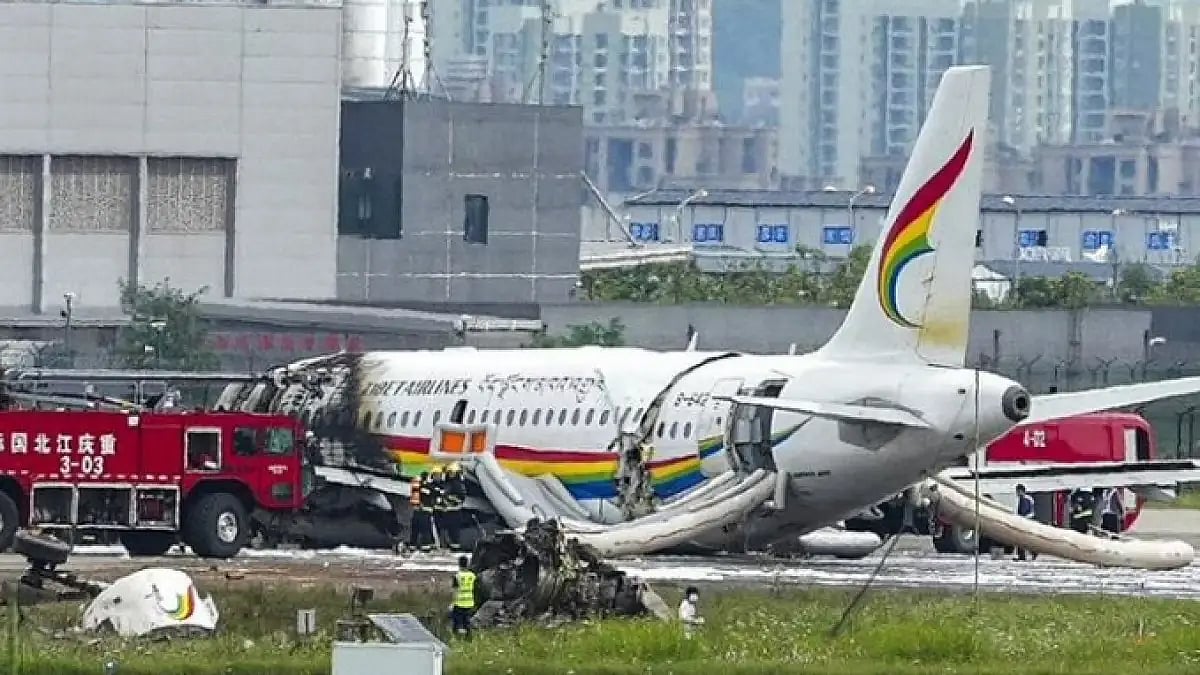 Over 40 people escaped with bruises and sprains on Thursday when a passenger plane of China’s Tibet Airlines with 113 passengers and nine crew onboard veered off the runway and caught fire while taking off in the country’s southwest Chongqing city, the second major aviation accident in the country in two months.