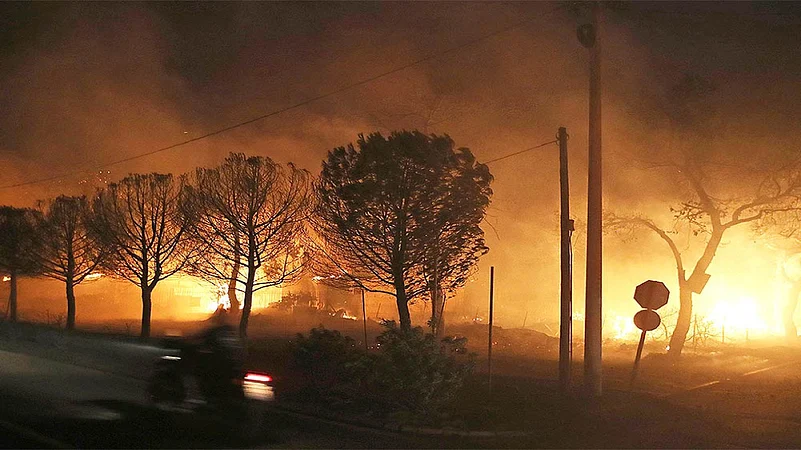 A major fire has broken out in southern Greece, burning homes in villages not far from the famous archaeological site of Ancient Olympia and prompting the evacuations of six villages.