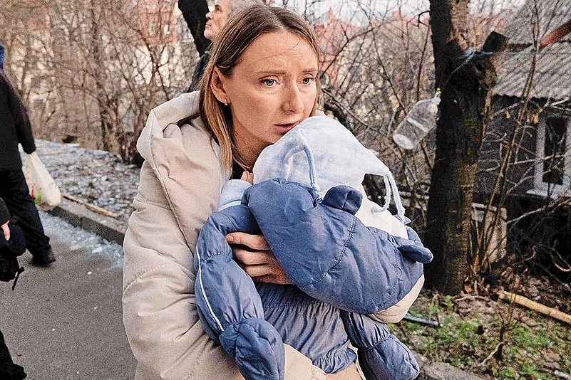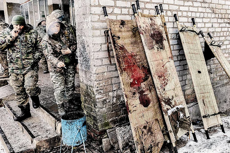 I reached Ukraine on February 25, 2022, along with Marco Cremonesi and Francesco Maviglia—two young reporters like me. We were all freelancers and it was our first time in a warzone. We had gone there to cover the ongoing Russia-Ukraine war. A bus, full of soldiers, took us from the border of Poland to Ukraine. The roads were packed with cars and people were fleeing from Ukraine.