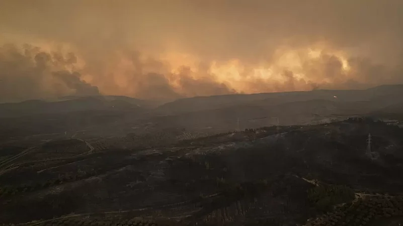 In a heart-wrenching tragedy, Greece's idyllic landscapes have turned into scenes of devastation as ferocious wildfires sweep through the northeastern Evros region. Amidst the relentless flames, the courageous efforts of firefighters and helicopters battling the inferno paint a stark contrast against the backdrop of scorched villages, highlighting the immense challenges posed by the unyielding blaze.