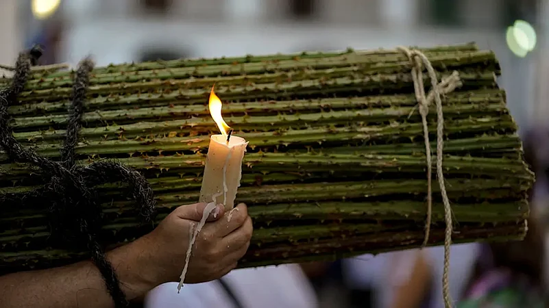 In traditional processions that last from Thursday evening into the early morning hours of Friday, hooded penitents drag chains and shoulder the thorny bundles through the streets, as some flog themselves with nail-studded whips meant to bring them closer to God