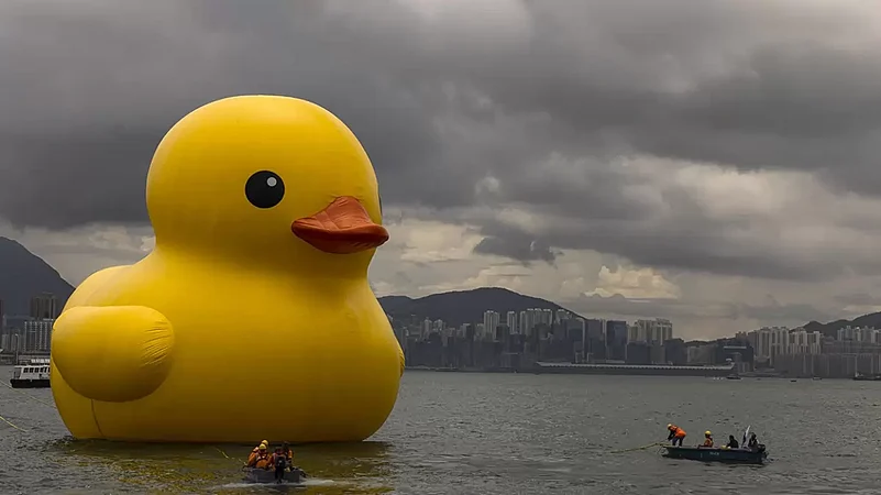 Hong Kong: 'Double Ducks' At Victoria Harbour Grab Eyes Of The Citizens