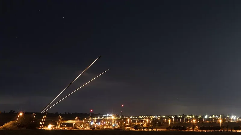 Visuals of Palestinian rockets approaching Israel and being intercepted by Israeli air defence surfaced on the internet.