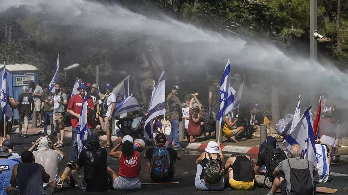 Earlier, late on Monday, tens of thousands of Israeli protesters crowded around the Supreme Court, waving national flags and chanting against the government.