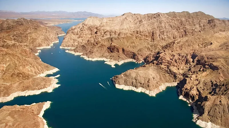 The lake surface has dropped more than 170 feet (52 meters) since the reservoir was full in 1983.