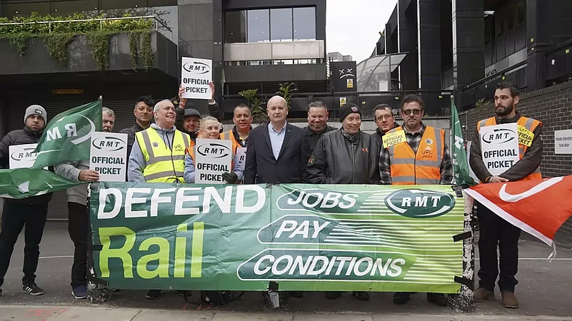 Members of the Rail, Maritime and Transport union (RMT) in London have gone on strike in a long-running dispute over pay, jobs, and pensions. The strike action has caused disruptions for commuters at Euston and Waterloo train stations, with picket lines forming and passengers facing delays and cancellations.