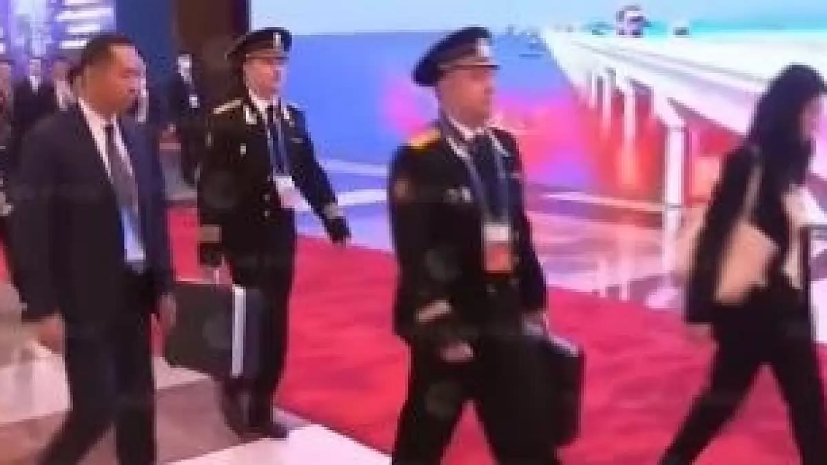 In a rare footage which surfaced on Wednesday sparked a host of speculations as Russian President Vladimir Putin was seen accompanied by officers carrying the so-called nuclear briefcase during his visit to China. The nuclear briefcases are reportedly used to ordering a nuclear strike