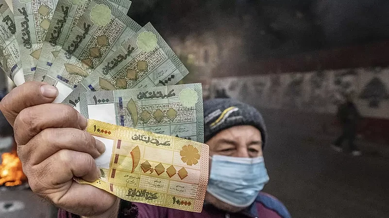 Dozens protested in front of the Central Bank, denouncing the slide of the Lebanese pound, which began in 2019.