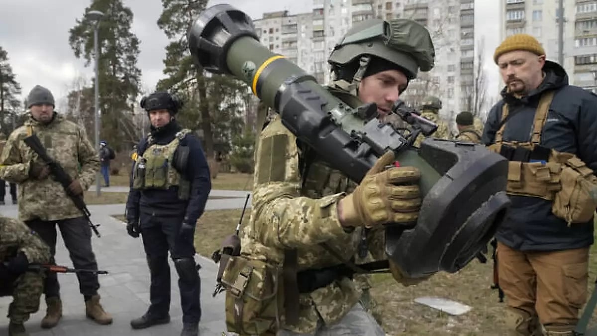 US Army 1st Sgt. Evan Williams of the 2-116th Cavalry Regiment said he and his soldiers had talked to Russian visitors at the fair and others curious about the weapon, which Ukraine has used to deadly effect against Russian armored vehicles.