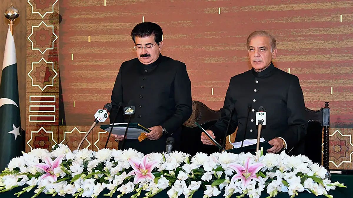 The acting President of Pakistan Sadiq Sanjrani administered the oath of office to newly elected Pakistani Prime Minister Shahbaz Sharif during a ceremony at Presidential Palace, in Islamabad following Imran Khan's dramatic departure from office.