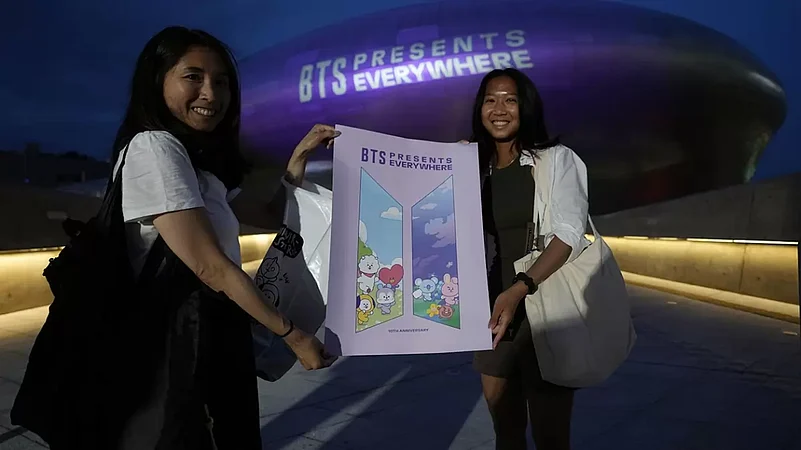 Skyscrapers, bridges and other landmarks in South Korea's capital will be lit up in purple on Monday as the country begins celebrating the 10th anniversary of K-pop band BTS, whose global popularity is a source of national pride.