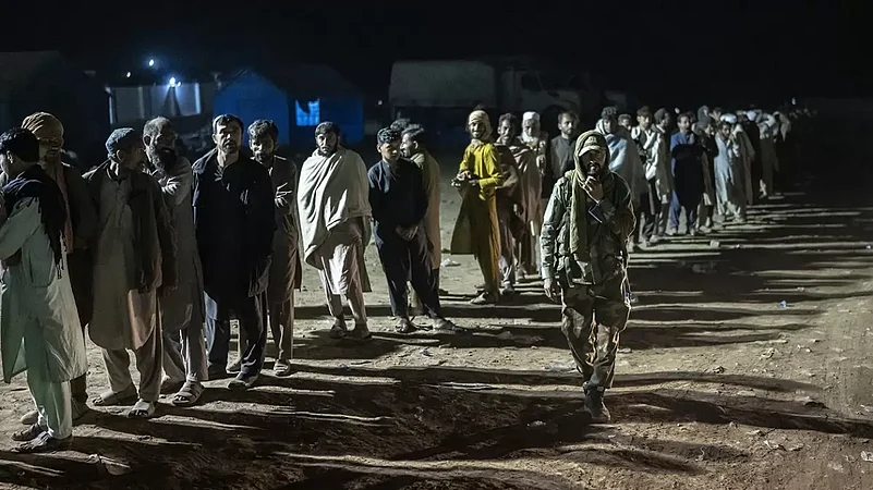 As the Pakistani government's deportation deadline approaches, a surge of Afghan refugees floods the Torkham Pakistan-Afghanistan border, with Taliban fighters on guard and makeshift camps rapidly accommodating the influx.