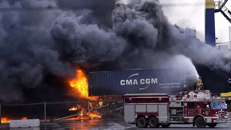 Television images on Tuesday showed thick black smoke rising from burning containers at Iskenderun Port. Reports said the fire was caused by containers that toppled over during the powerful earthquake that struck southeast Turkey on Monday. Turkey's state-run Anadolu Agency said a Turkish Coast Guard vessel was assisting efforts to extinguish fire.