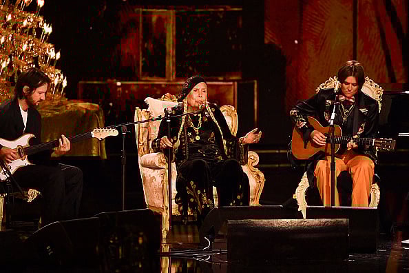 The iconic Rock and Roll Hall of Famer sat in a plush velvet chair, surrounded by flickering candles, accompanied by Brandi Carlile and a chamber orchestra. Together, they delivered a soulful and contemplative rendition of her timeless classic, "Both Sides Now."