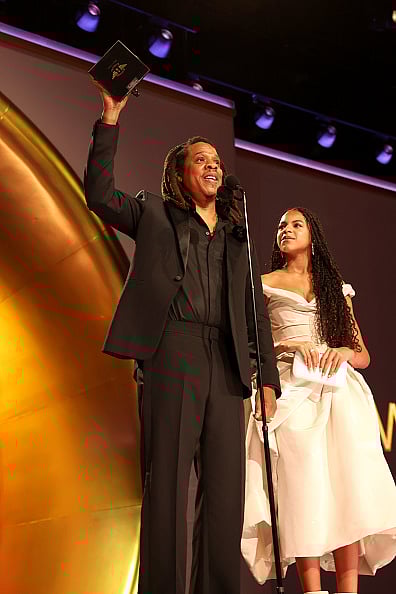 “So even by your own metrics, that doesn’t work. Think about that. The most Grammys; never won album of the year. It doesn’t work,” he said as their daughter Blue Ivy stood beside him.