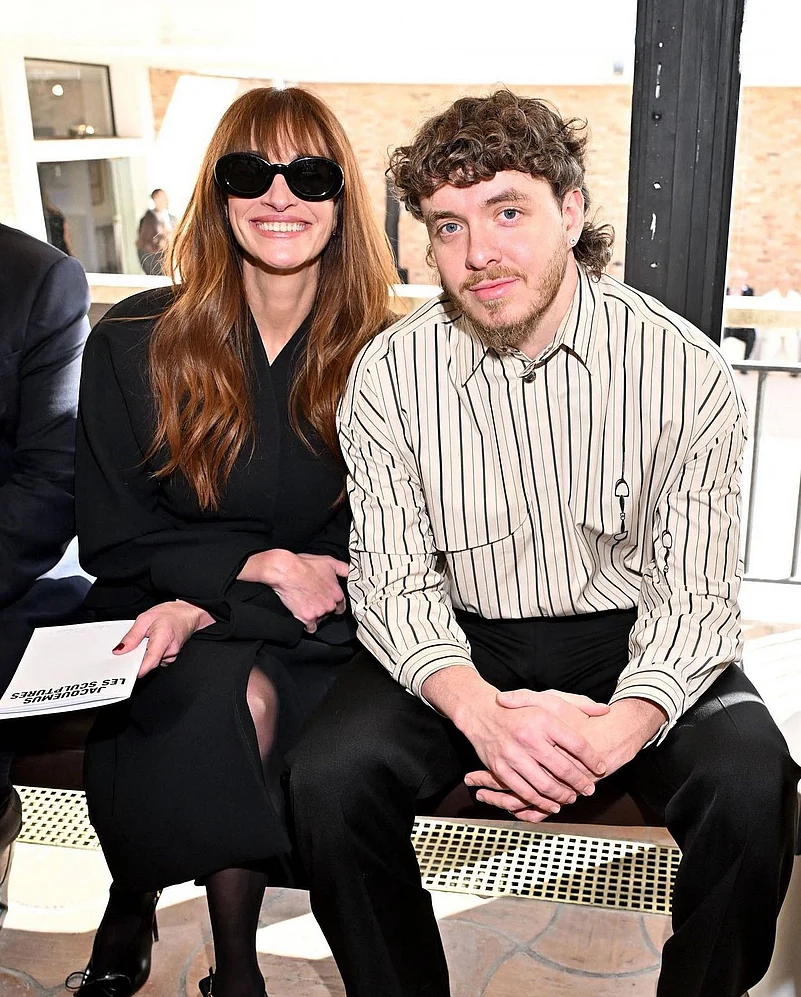 A refined take on the trend, it spoke volumes about Roberts' preference for understated elegance. Inside the venue, seated beside musician Jack Harlow, the actress elevated her look with round-framed sunglasses that accentuated her signature brunette bangs.